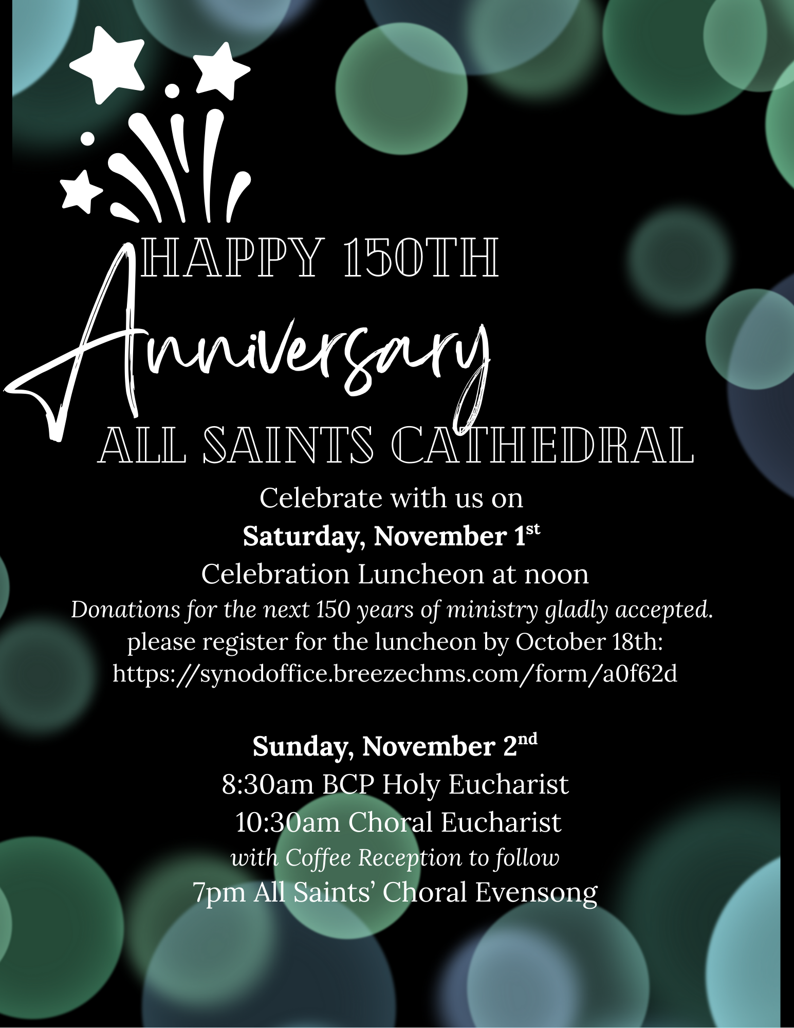 All Saints' Cathedral is celebrating its 150th anniversary this year. Everyone is invited to join the celebration!