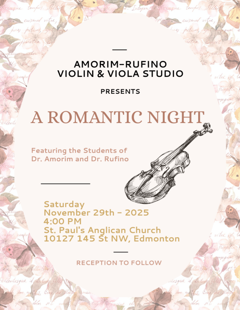 Come and enjoy classical music from the Romantic Period performed by talented young musicians from the Amorim-Rufino Violin and Viola Studio.