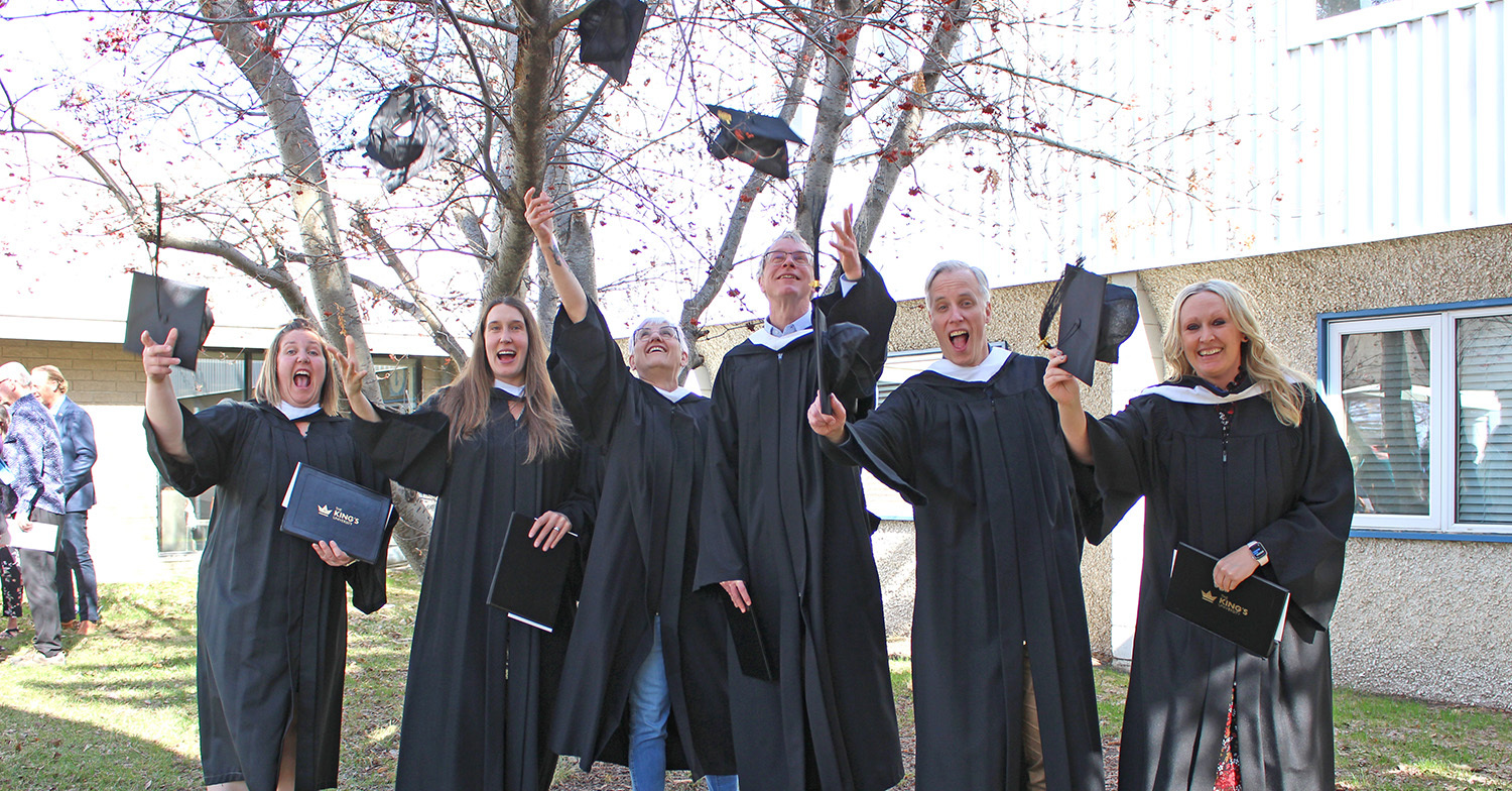Six graduates of the Studion School for Spiritual Direction walked across the stage to receive their program certificates at King’s University on Saturday, April 29. The formal ceremony was part of a weekend of celebrations for the nine grads of the Studion’s 3rd cohort. The festivities included a banquet and presentations Friday evening and a family pizza party Saturday evening before the Oilers’ game.