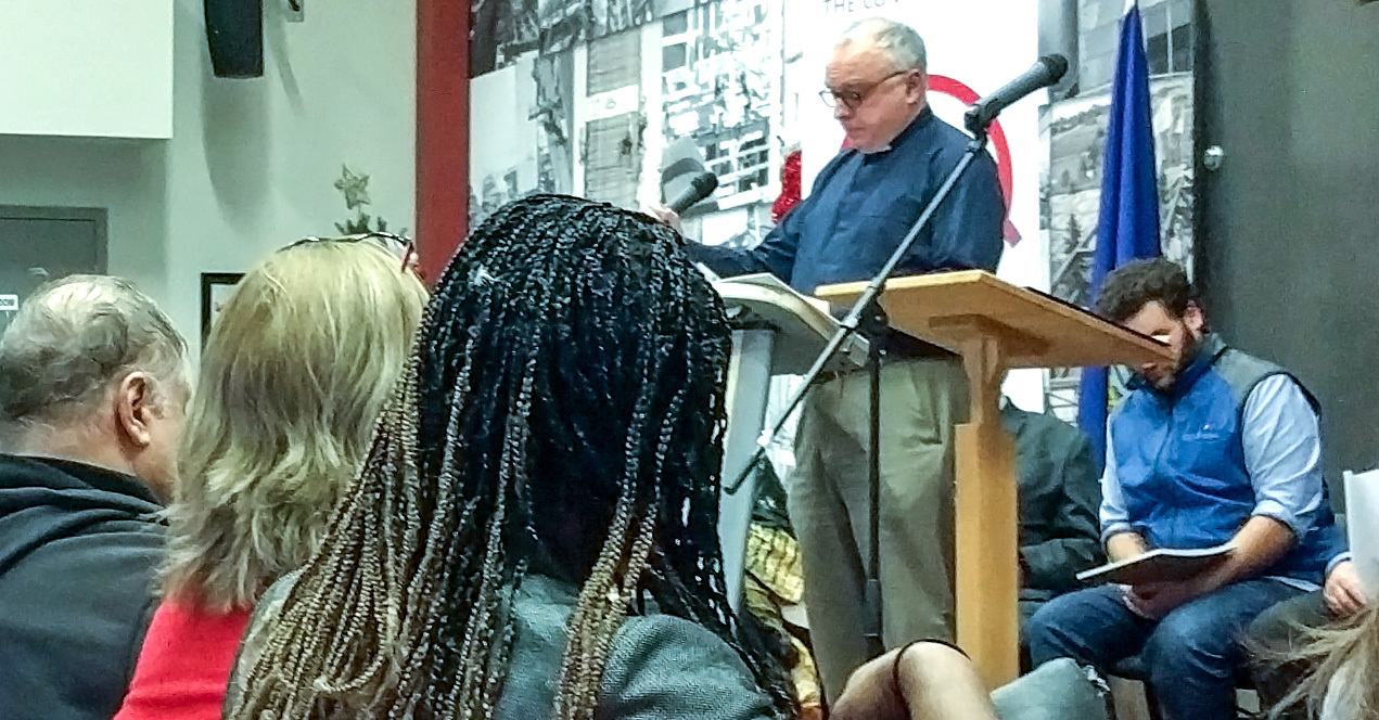 At a Greater Edmonton Alliance (GEA) Action Assembly on December 4, the Rev. John Gee thanked City of Edmonton representatives for their support of a recently adopted policy ensuring all contracted service providers pay a living wage. A living wage, he explained, is the amount of income deemed sufficient to meet a family’s basic needs – not luxuries, but the necessities like food, shelter, clothing, and transportation. Currently the living wage in Edmonton is $16.51 per hour.
