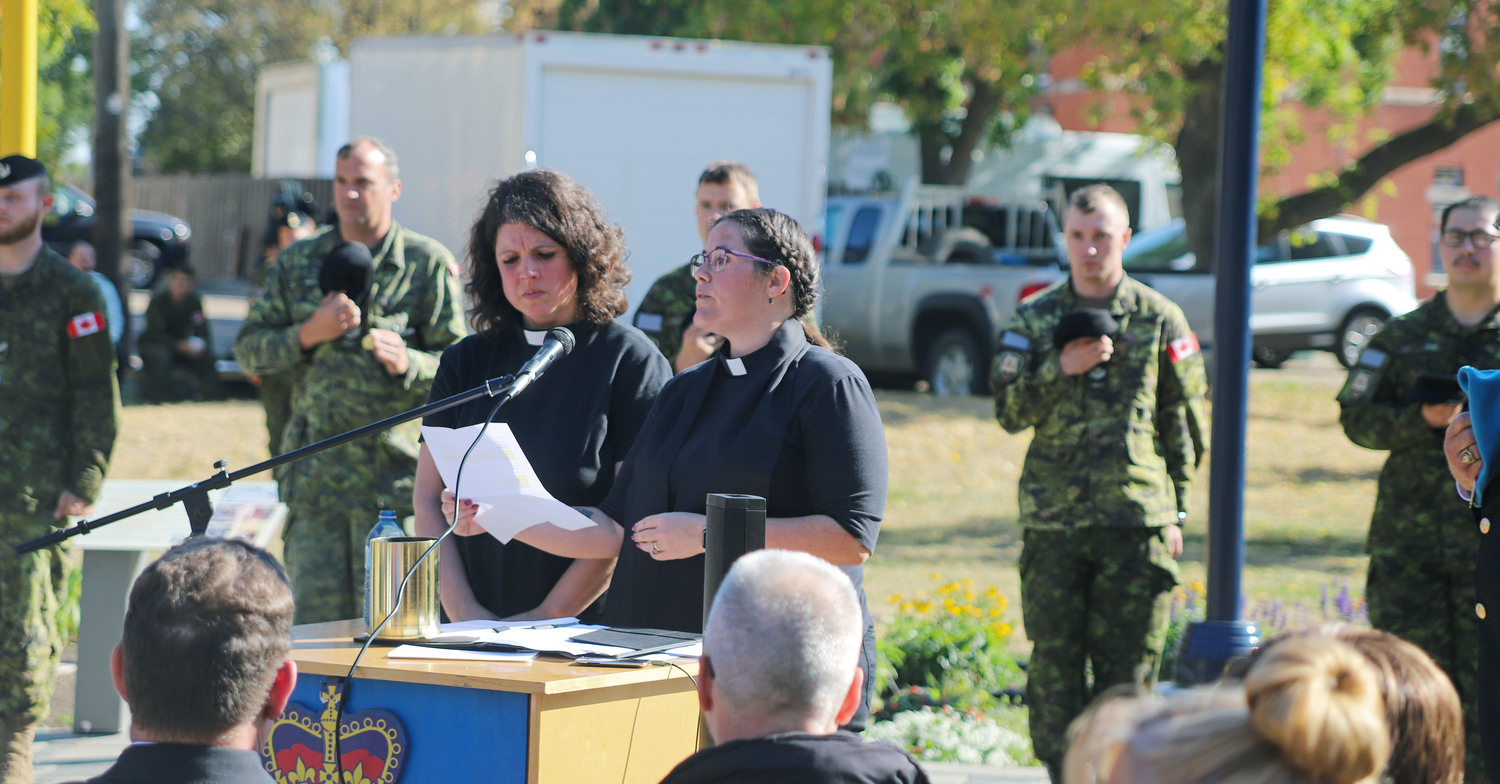 In the bright midday sun, against a backdrop of trees beginning to shed their golden leaves, Padre Danielle Key and Pastor Erin Thomas blessed a community park in the heart of Edmonton’s Old Strathcona neighbourhood.