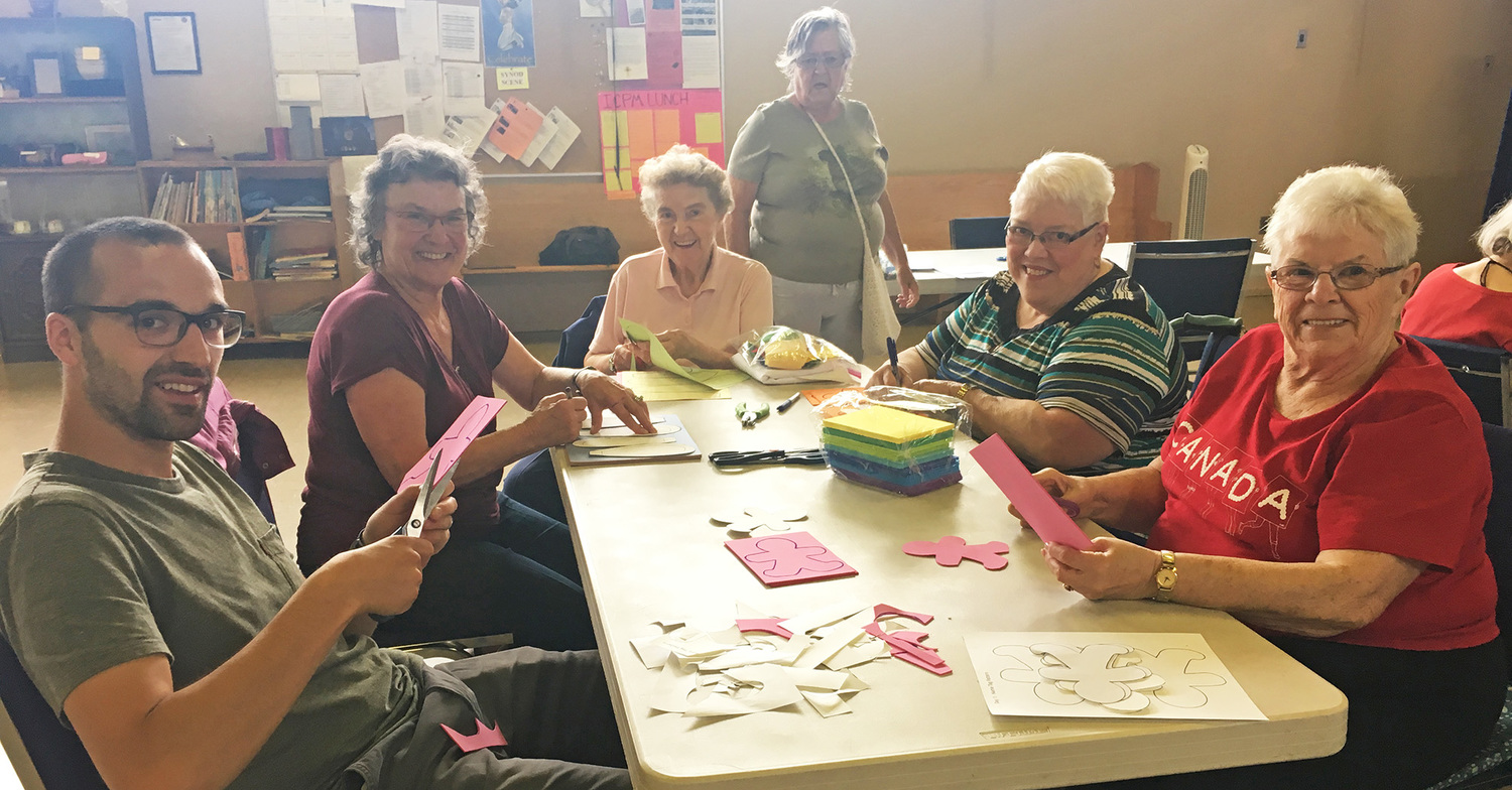 Eager helpers at St. Luke’s, Edmonton got out their rulers and scissors on Wednesday, and in no time had whipped up all the cut-outs and posters and other prep for the upcoming mission trip to Fort Liard. A team of four from St. Luke’s leaves Saturday morning. Backed by a strong prayer-team at home, they will run a week-long vacation bible school in the tiny hamlet, just over the BC border into the Northwest Territories. The mission is one of many directed by On Eagle’s Wings every summer.
